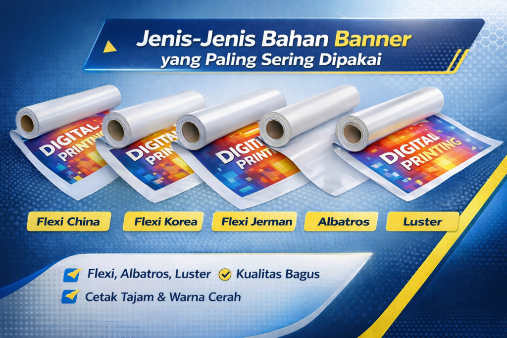 Banner merupakan salah satu media promosi yang sangat efektif untuk memperkenalkan produk, layanan, maupun acara tertentu. Dalam dunia digital printing, terdapat berbagai jenis bahan banner yang dapat digunakan sesuai dengan kebutuhan.